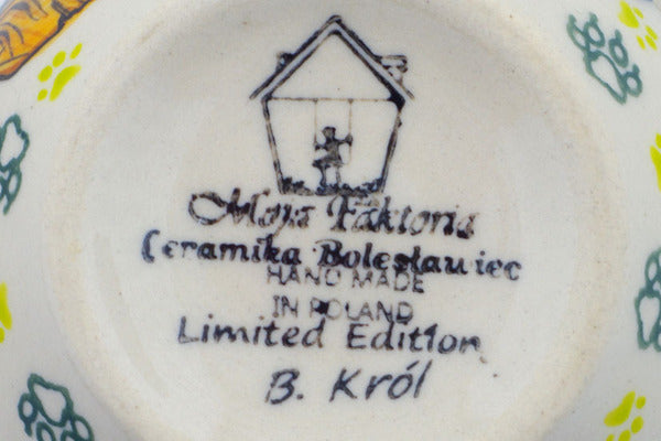 This Polish Pottery 13 oz Bubble Mug - Good Luck Kitty is handmade and handpainted by the Moja Faktoria factory in Boleslawiec, Poland.