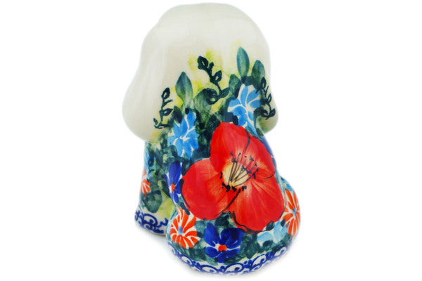 This Polish Pottery 4" Dog Figurine - Pond Flowers is handmade and handpainted by the Kaleta Ceramics factory in Boleslawiec, Poland.