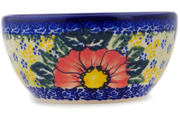This Polish Pottery 5" Bowl - Red Daisy Delight is handmade and handpainted by the Ceramika Nina factory in Boleslawiec, Poland.