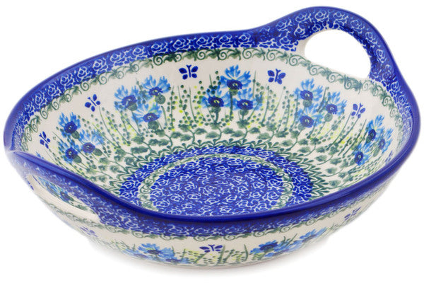 This Polish Pottery 10" Bowl with Handles - Fresh Flora is handmade and handpainted by the Ceramika Bona factory in Boleslawiec, Poland.