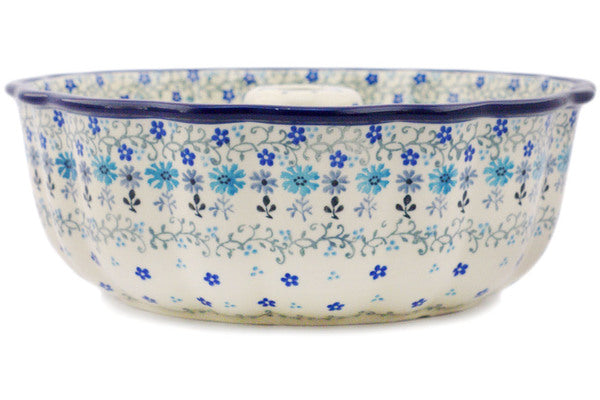 This Polish Pottery 10" Cake Mould - Baby Blue Garden is handmade and handpainted by the Ceramika Artystyczna factory in Boleslawiec, Poland.