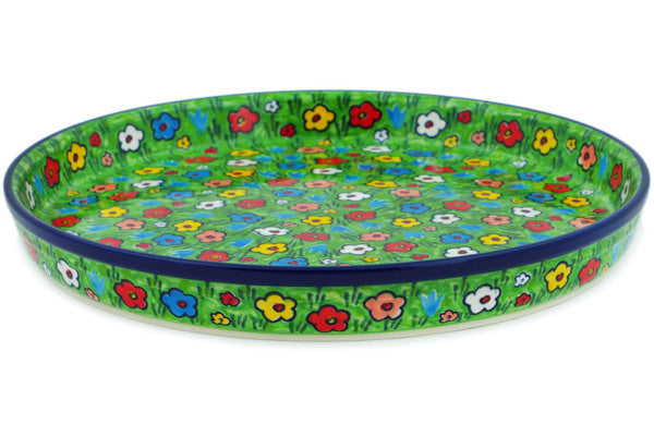 This Polish Pottery 10" Cookie Platter - Whimsical Garden is handmade and handpainted by the Ceramika Artystyczna factory in Boleslawiec, Poland.