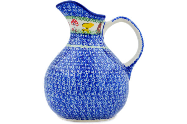 This Polish Pottery 83 oz Pitcher - Mushroom Garden is handmade and handpainted by the Ceramika Nina factory in Boleslawiec, Poland.