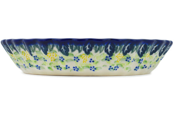 This Polish Pottery 10" Fluted Pie Dish - Blue Happy Fields is handmade and handpainted by the Ceramika Nina factory in Boleslawiec, Poland.