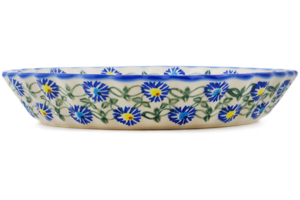 This Polish Pottery 10" Fluted Pie Dish - Blue Thistle Beauty is handmade and handpainted by the Ceramika Bona factory in Boleslawiec, Poland.