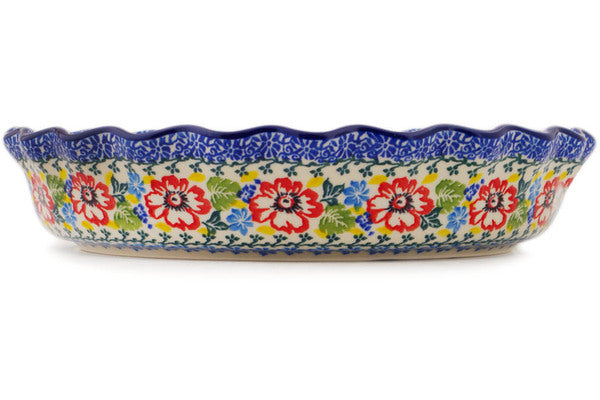 This Polish Pottery 10" Fluted Pie Dish - Hummingbird Meadow is handmade and handpainted by the Ceramika Artystyczna factory in Boleslawiec, Poland.