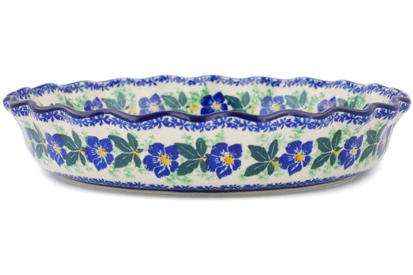 This Polish Pottery 10" Fluted Pie Dish - Infinity Flower is handmade and handpainted by the Ceramika Artystyczna factory in Boleslawiec, Poland.