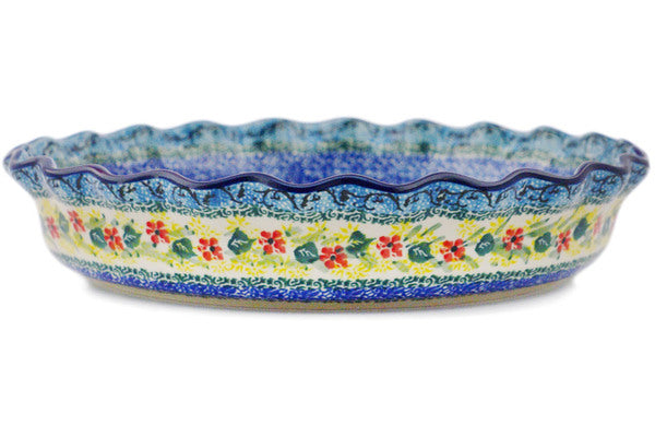 This Polish Pottery 10" Fluted Pie Dish - Morning Song is handmade and handpainted by the Ceramika Artystyczna factory in Boleslawiec, Poland.