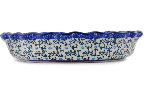 This Polish Pottery 10" Fluted Pie Dish - Petite Blue Vine is handmade and handpainted by the Ceramika Artystyczna factory in Boleslawiec, Poland.