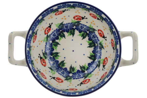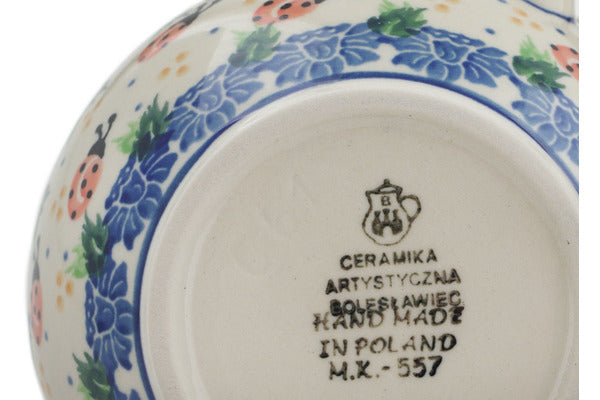 This Polish Pottery 10 oz Bouillon Cup - Lady Bug Pomenade is handmade and handpainted by the Ceramika Artystyczna factory in Boleslawiec, Poland.