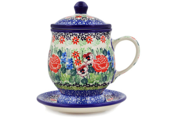 This Polish Pottery 10 oz Brewing Mug - Basket Of Beauty is handmade and handpainted by the Ceramika Artystyczna factory in Boleslawiec, Poland.