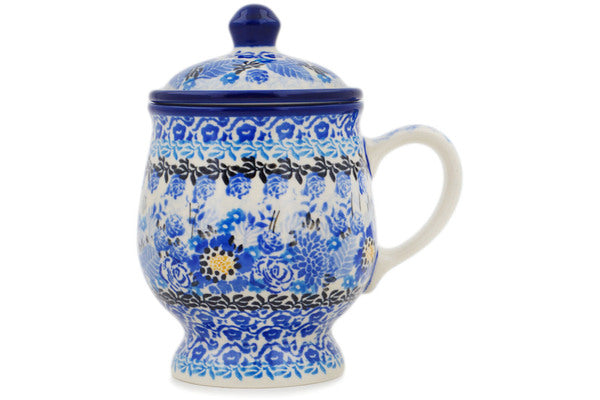 This Polish Pottery 10 oz Brewing Mug - Fields Of Blue is handmade and handpainted by the Ceramika Artystyczna factory in Boleslawiec, Poland.