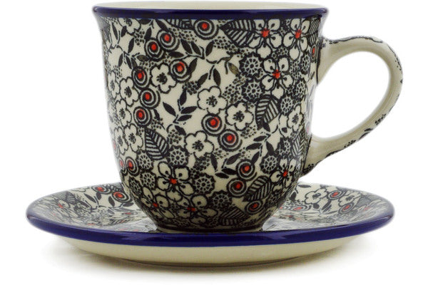 This Polish Pottery 10 oz Cup with Saucer - Classic Black And White is handmade and handpainted by the Ceramika Artystyczna factory in Boleslawiec, Poland.