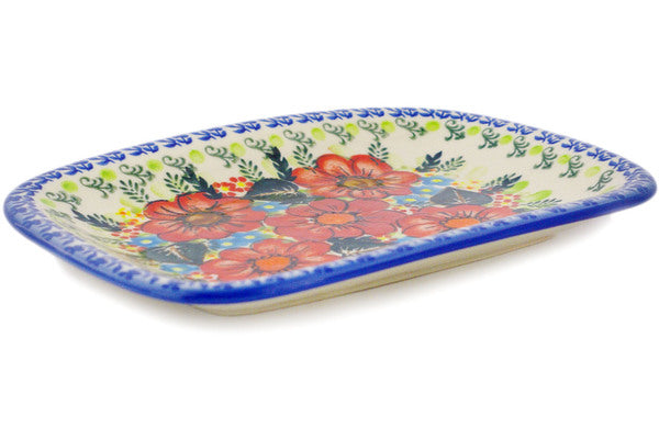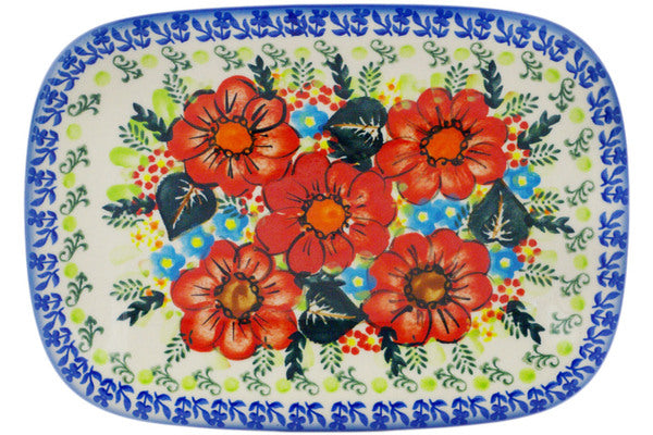 This Polish Pottery 10" Platter - Bold Red Poppies is handmade and handpainted by the Ceramika Bona factory in Boleslawiec, Poland.