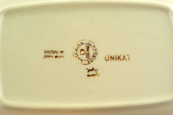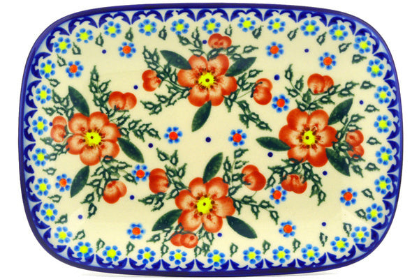 This Polish Pottery 10" Platter - Peach Tudor Rose is handmade and handpainted by the Ceramika Bona factory in Boleslawiec, Poland.