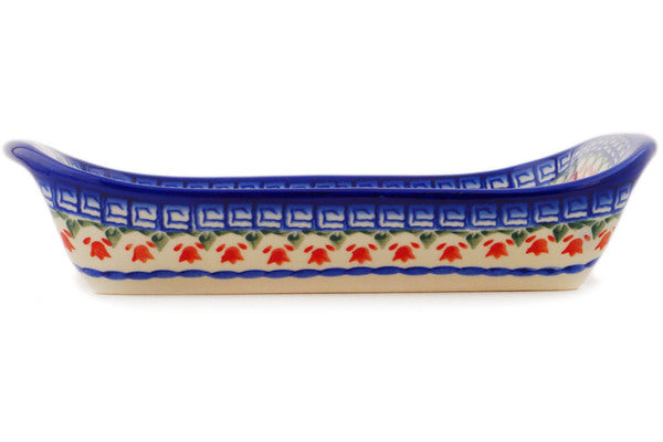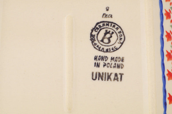 This Polish Pottery 10" Platter with Handles - Brilliant Butterfly Popp is handmade and handpainted by the Ceramika Bona factory in Boleslawiec, Poland.