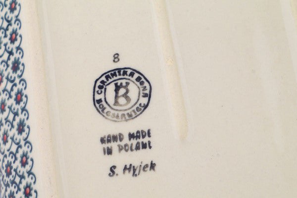 This Polish Pottery 10" Platter with Handles - Field Of Black Daisies is handmade and handpainted by the Ceramika Bona factory in Boleslawiec, Poland.