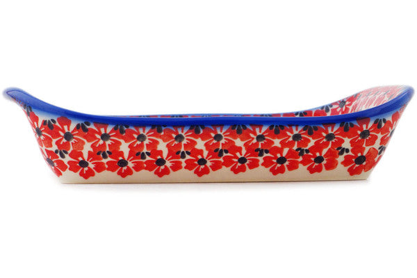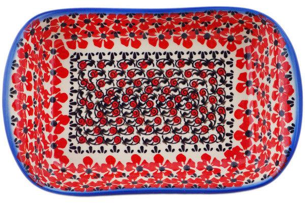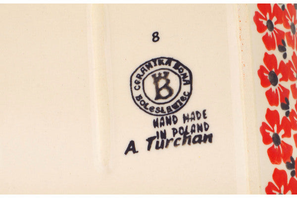 This Polish Pottery 10" Platter with Handles - Hawaiian Bliss is handmade and handpainted by the Ceramika Bona factory in Boleslawiec, Poland.