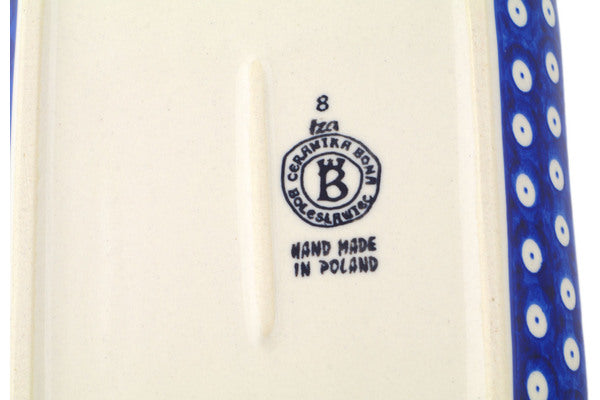This Polish Pottery 10" Platter with Handles - Yellow Holly Berries is handmade and handpainted by the Ceramika Bona factory in Boleslawiec, Poland.
