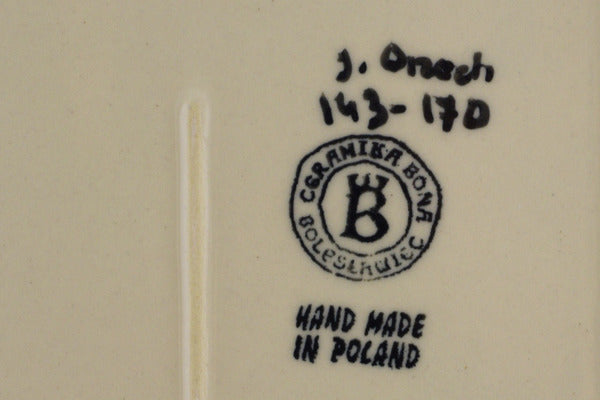This Polish Pottery 10" Rectangular Baker - Blue Wreath is handmade and handpainted by the Ceramika Bona factory in Boleslawiec, Poland.