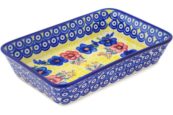This Polish Pottery 10" Rectangular Baker - Neon Poppies is handmade and handpainted by the Ceramika Bona factory in Boleslawiec, Poland.