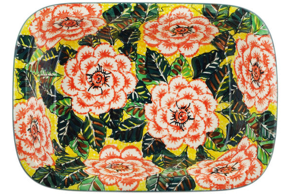 10" Rectangular Baker - Orange Peonies