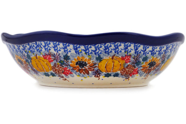 This Polish Pottery 10" Scalloped Bowl - Autumn Falling Leaves is handmade and handpainted by the Ceramika Artystyczna factory in Boleslawiec, Poland.