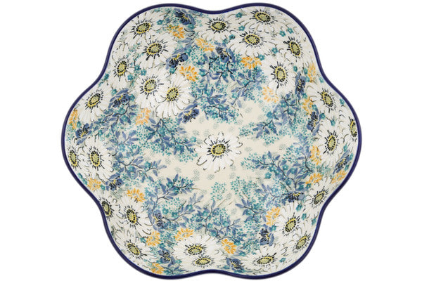 This Polish Pottery 10" Scalloped Bowl - Elegance is handmade and handpainted by the Ceramika Artystyczna factory in Boleslawiec, Poland.