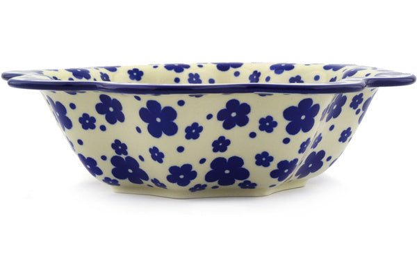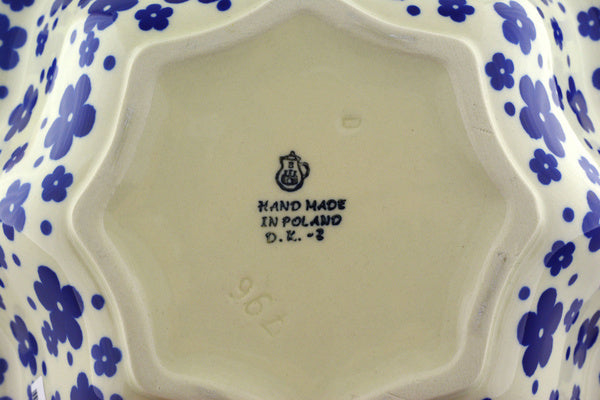 This Polish Pottery 10" Scalloped Fluted Bowl - Cobalt Meadow is handmade and handpainted by the Ceramika Artystyczna factory in Boleslawiec, Poland.