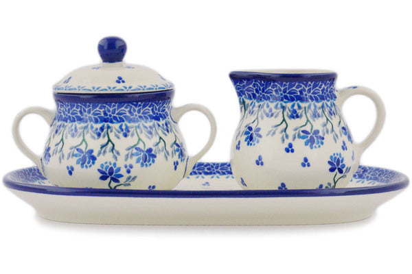This Polish Pottery 10" Sugar and Creamer Set - Blue Grapevine is handmade and handpainted by the Ceramika Artystyczna factory in Boleslawiec, Poland.