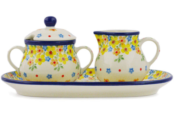 This Polish Pottery 10" Sugar and Creamer Set - Country Spring is handmade and handpainted by the Ceramika Artystyczna factory in Boleslawiec, Poland.