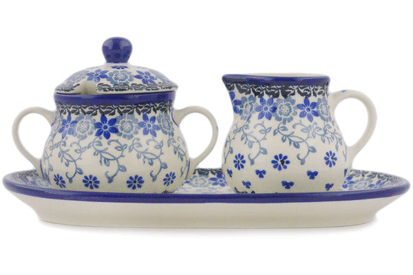 This Polish Pottery 10" Sugar and Creamer Set - First Snow is handmade and handpainted by the Ceramika Artystyczna factory in Boleslawiec, Poland.