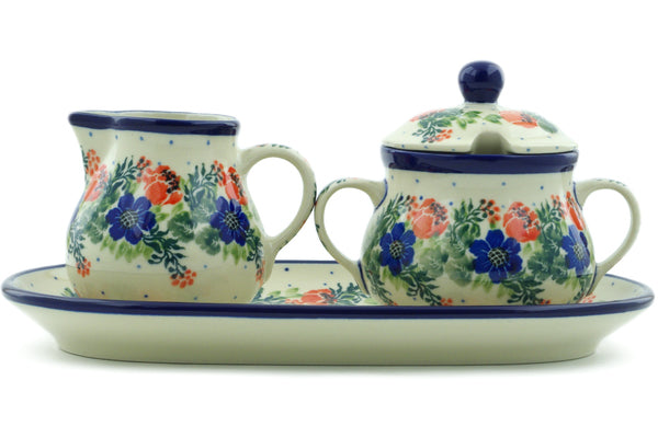 This Polish Pottery 10" Sugar and Creamer Set - Polish Wreath is handmade and handpainted by the Ceramika Artystyczna factory in Boleslawiec, Poland.