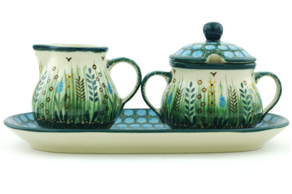 This Polish Pottery 10" Sugar and Creamer Set - Prairie Land is handmade and handpainted by the Ceramika Artystyczna factory in Boleslawiec, Poland.
