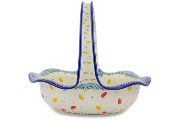 This Polish Pottery 11" Basket with Handle - 3349X is handmade and handpainted by the Ceramika Artystyczna factory in Boleslawiec, Poland.