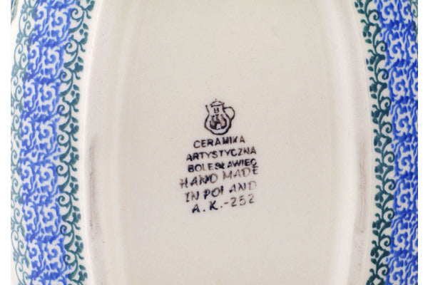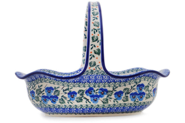 This Polish Pottery 11" Basket with Handle - Blue Pansy is handmade and handpainted by the Ceramika Artystyczna factory in Boleslawiec, Poland.