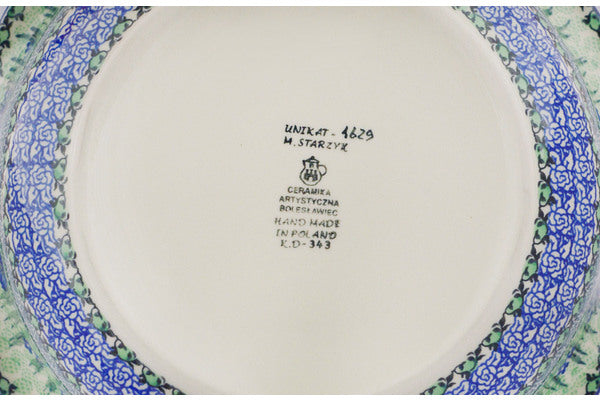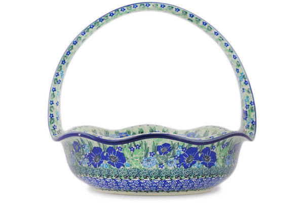 This Polish Pottery 11" Basket with Handle - Moody Blues is handmade and handpainted by the Ceramika Artystyczna factory in Boleslawiec, Poland.