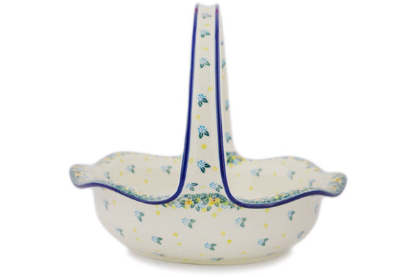 This Polish Pottery 11" Basket with Handle - Sheep In The Meadow is handmade and handpainted by the Ceramika Artystyczna factory in Boleslawiec, Poland.