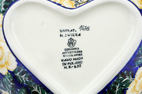 This Polish Pottery 11" Heart Shaped Bowl - Butter Blooms is handmade and handpainted by the Ceramika Artystyczna factory in Boleslawiec, Poland.