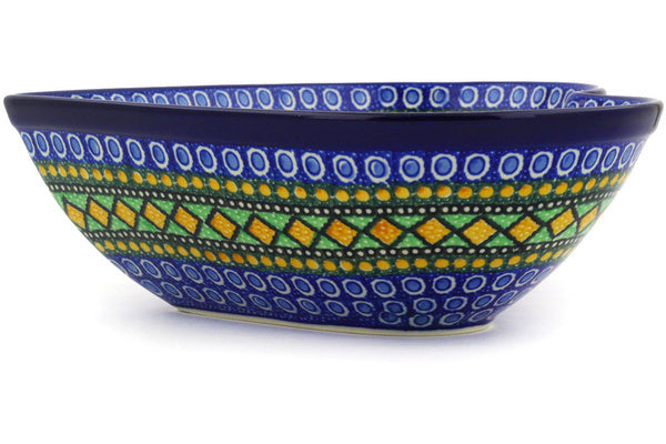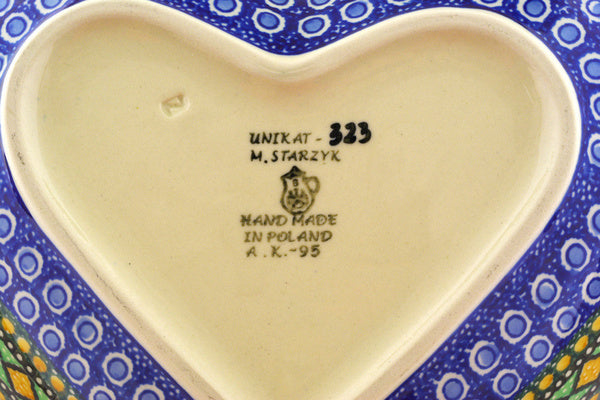 This Polish Pottery 11" Heart Shaped Bowl - Stained Glass Window is handmade and handpainted by the Ceramika Artystyczna factory in Boleslawiec, Poland.