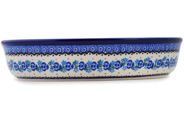 This Polish Pottery 11" Oval Baker - Blue Bud Sea is handmade and handpainted by the Ceramika Artystyczna factory in Boleslawiec, Poland.