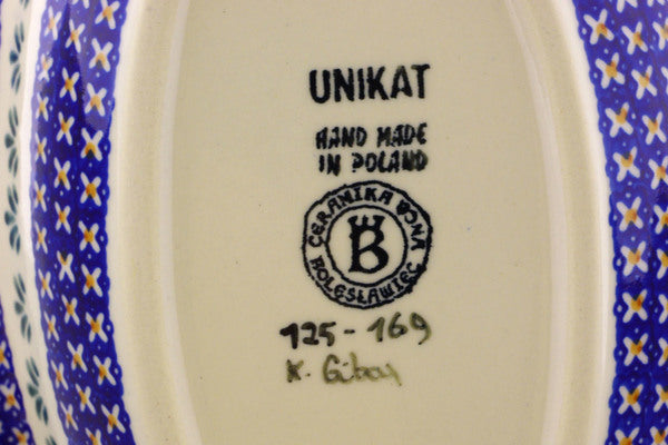 Ceramika Bona factory stamp | Polish Pottery HouseThis Polish Pottery 11" Oval Bowl - Blue Cress is handmade and handpainted by the Ceramika Bona factory in Boleslawiec, Poland.