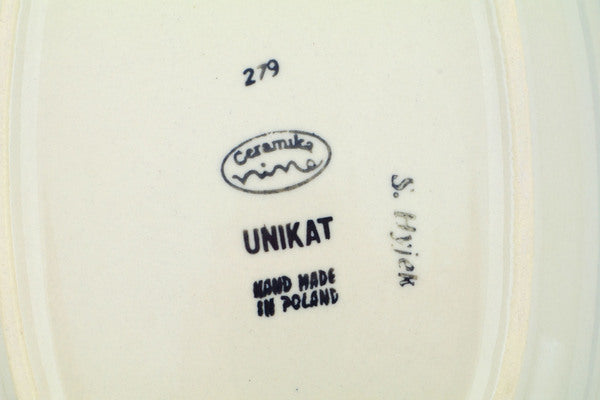 This Polish Pottery 11" Oval Platter - Beekeeper Gnome is handmade and handpainted by the Ceramika Nina factory in Boleslawiec, Poland.
