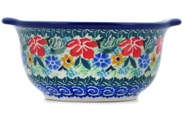 This Polish Pottery 11 oz Bouillon Cup - Pansy Twins is handmade and handpainted by the Ceramika Artystyczna factory in Boleslawiec, Poland.