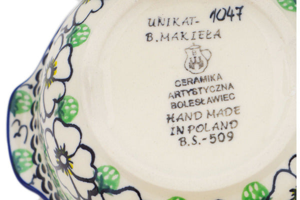 This Polish Pottery 11 oz Bouillon Cup - Strawberries And Cream is handmade and handpainted by the Ceramika Artystyczna factory in Boleslawiec, Poland.