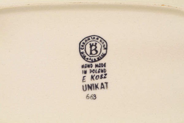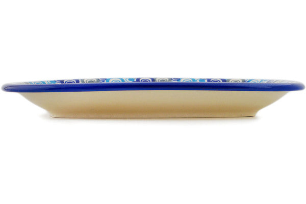 This Polish Pottery 11" Platter - Blue Peacock Eye is handmade and handpainted by the Ceramika Bona factory in Boleslawiec, Poland.