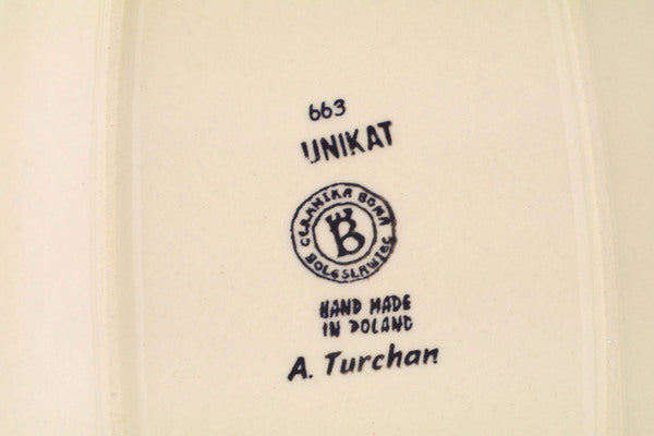 This Polish Pottery 11" Platter - Lovely Blueberries is handmade and handpainted by the Ceramika Bona factory in Boleslawiec, Poland.