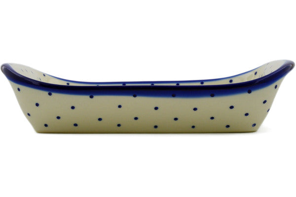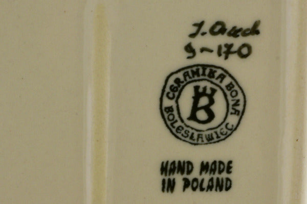 This Polish Pottery 11" Platter with Handles - Blue Wreath is handmade and handpainted by the Ceramika Bona factory in Boleslawiec, Poland.