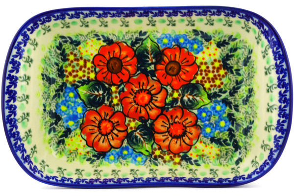 This Polish Pottery 11" Platter with Handles - Bold Red Poppies is handmade and handpainted by the Ceramika Bona factory in Boleslawiec, Poland.
