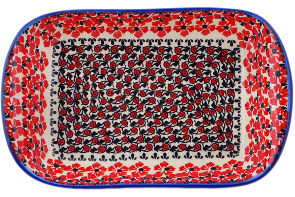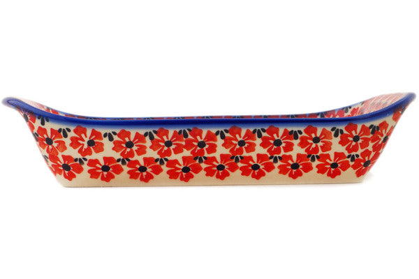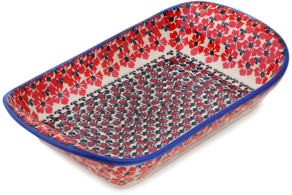 This Polish Pottery 11" Platter with Handles - Hawaiian Bliss is handmade and handpainted by the Ceramika Bona factory in Boleslawiec, Poland.